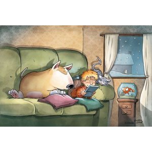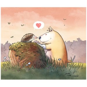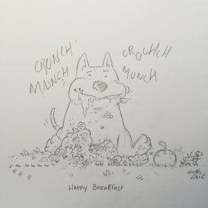 1 illustration en couleurs « Croquettes Time » en format A4 sur papier Olin blanc de 250 gr., numérotée et signée + 1 ticket de tombola