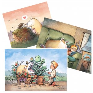 Les 3 illustrations en couleurs de Rockette en format A4 sur papier Olin blanc de 250 gr., numérotées et signées + 1 ticket de tombola