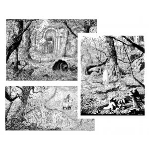 3 illustrations « Celtic », « Tanukis » et « Petit Palais » en format A3 sur papier Olin blanc de 250 gr., numérotées et signées + 1 ticket