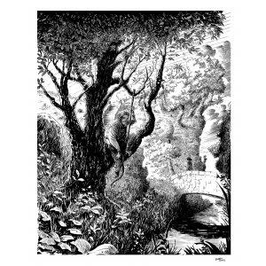 1 illustration en noir et blanc « Celtic » en format A3 sur papier Olin blanc de 250 gr., numérotée et signée + 1 ticket de tombola