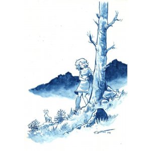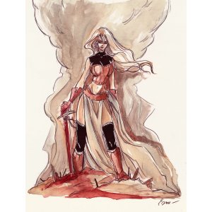 aquarelle du personnage Akhesa crayonne +aquarelle +encrage format A4 papier200g/m² Port compris